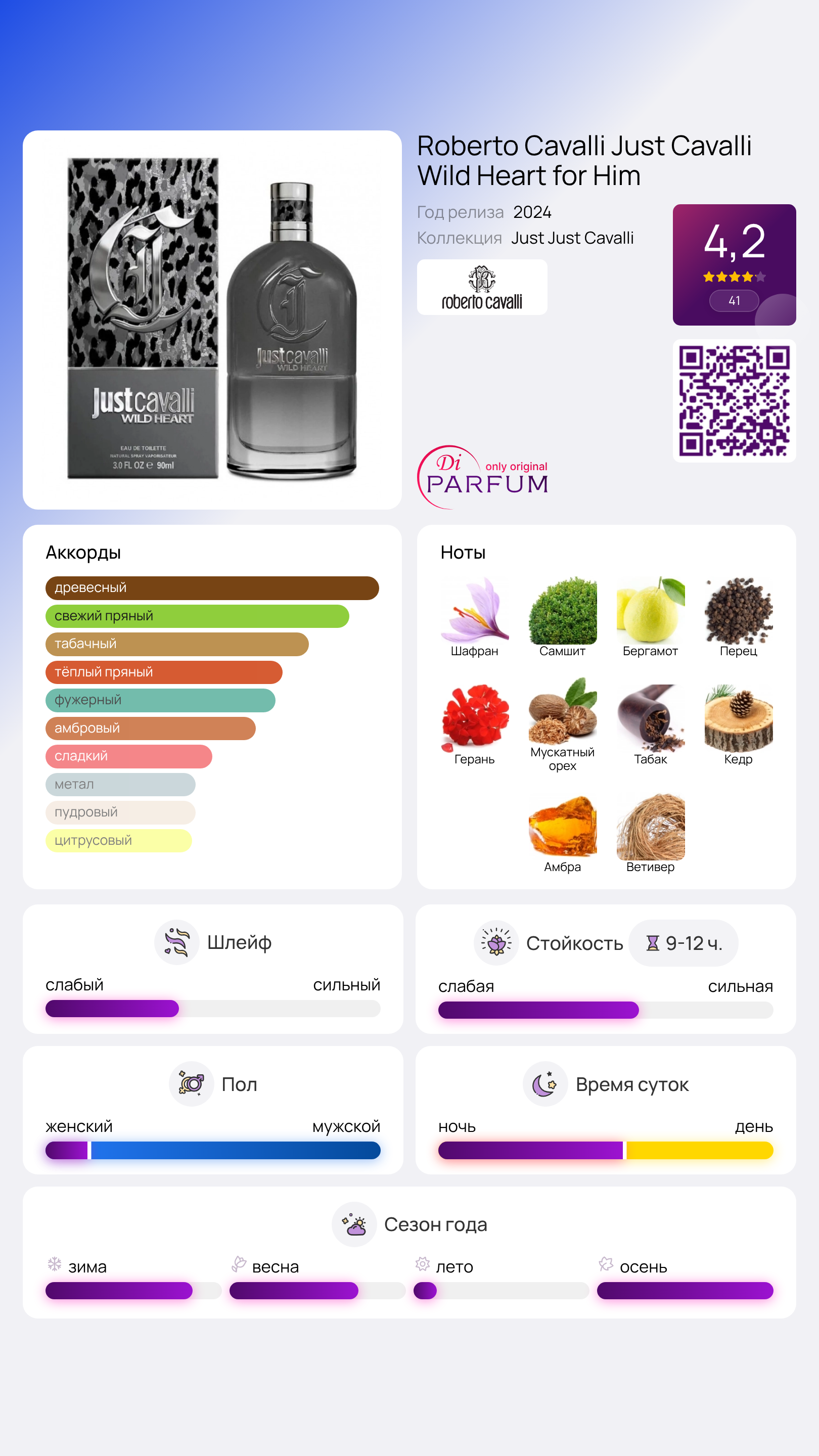 Roberto Cavalli Just Cavalli Wild Heart for Him – это идеальный выбор для мужчины, стремящегося привлечь внимание, выделить свои сильные стороны и оставить незабываемый след в любой ситуации.