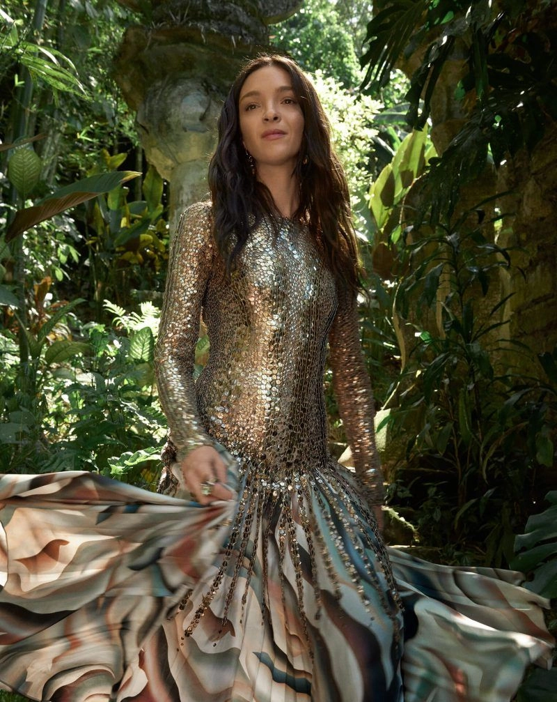 Вдалеке гремит рык гепарда, а в сырой почве остаются следы сильных лап хищников. Ощутите себя настоящей амазонкой в сердце тропических лесов, где звучат мелодии необычных птиц, а дух свободы и опасности захватывает голову. На героине — яркая повязка на бедрах, ожерелье из цветов и аромат Roberto Cavalli Paradise Found, женская версия парного парфюма, выпущенного в 2020 году.