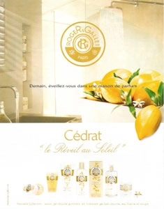 Cedrat от Roger & Gallet представляет собой женский аромат, относящийся к группе цитрусовых фужеров. Выпущен он в 2007 году.