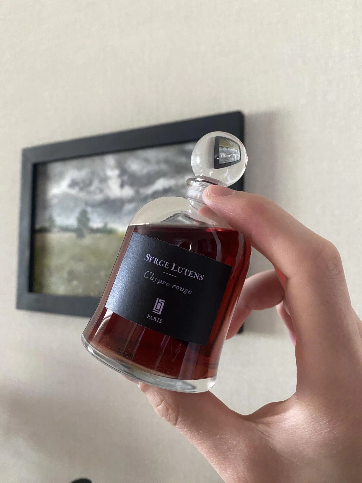 Создавая аромат Chypre Rouge, дизайнер Serge Lutens черпал вдохновение из воспоминаний об осенних лесах, где земля устелена золотыми листьями, а фиолетово-красный мох свисает с могучих сосен. Этот загадочный и мечтательный парфюм гармонично сочетает зеленые, травянистые нотки тимьяна, сосновой хвои и мха, с мягким сочетанием орехов, меда и ванили.
