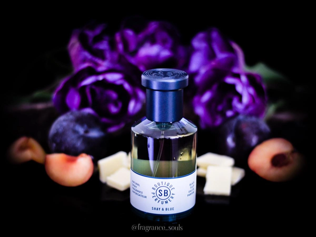 Гурманская феерия начинается в базе Shay & Blue London Black Tulip — сливочно-кремовый белый шоколад плавно тает, оставляя за собой роскошный древесный шлейф.