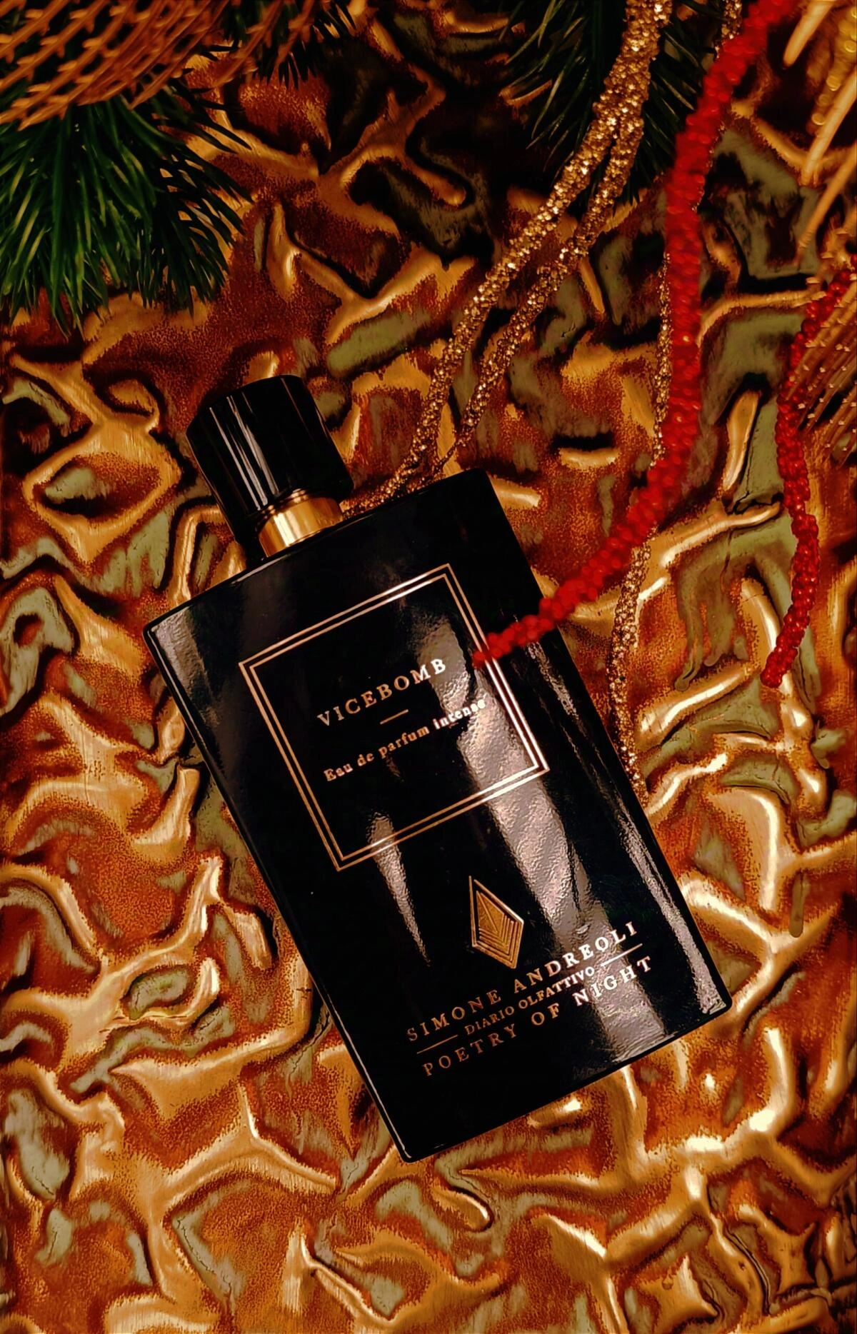В аромате ощущаются цветочные ноты иланга, смешанные с дерзкими красными фруктами. Дымные бобы тонка создают шоколадные оттенки, дополненные каплей сухой ванили. В финале раскрывается кисловатая нотка спелой вишни, сочетание древесных аккордов придает аромату многогранность. Насыщенная композиция Vicebomb от Simone Andreoli является настоящей квинтэссенцией для любого образа, как мужского, так и женского. Этот парфюм был выпущен итальянским брендом в 2023 году.
