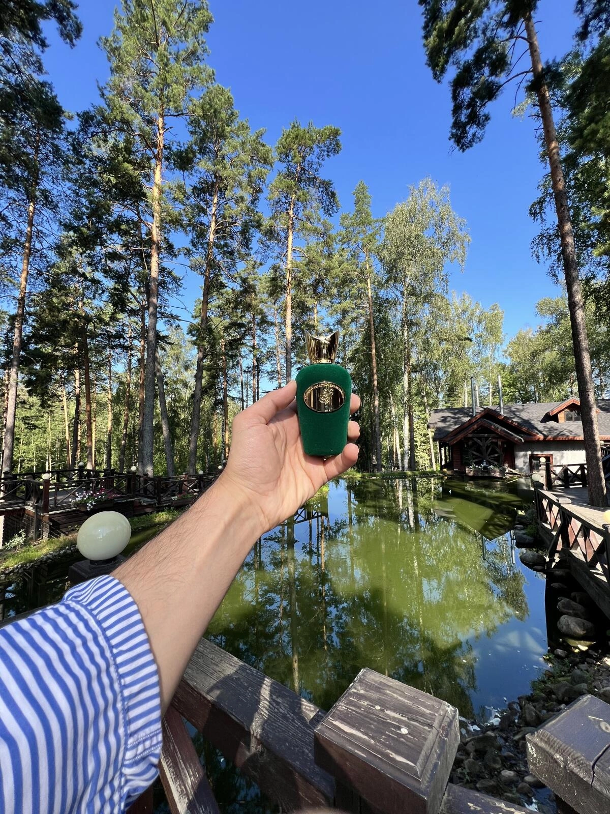 Стильно оформленный флакон в форме амфоры, обтянутый темно-зеленым бархатом, подчеркивает эксклюзивность аромата. Колпачок, напоминающий тиару фараона, символизирует величие, заключенное в этом эликсире. Этот парфюм был представлен известным итальянским брендом в 2022 году в рамках "оперной" коллекции.