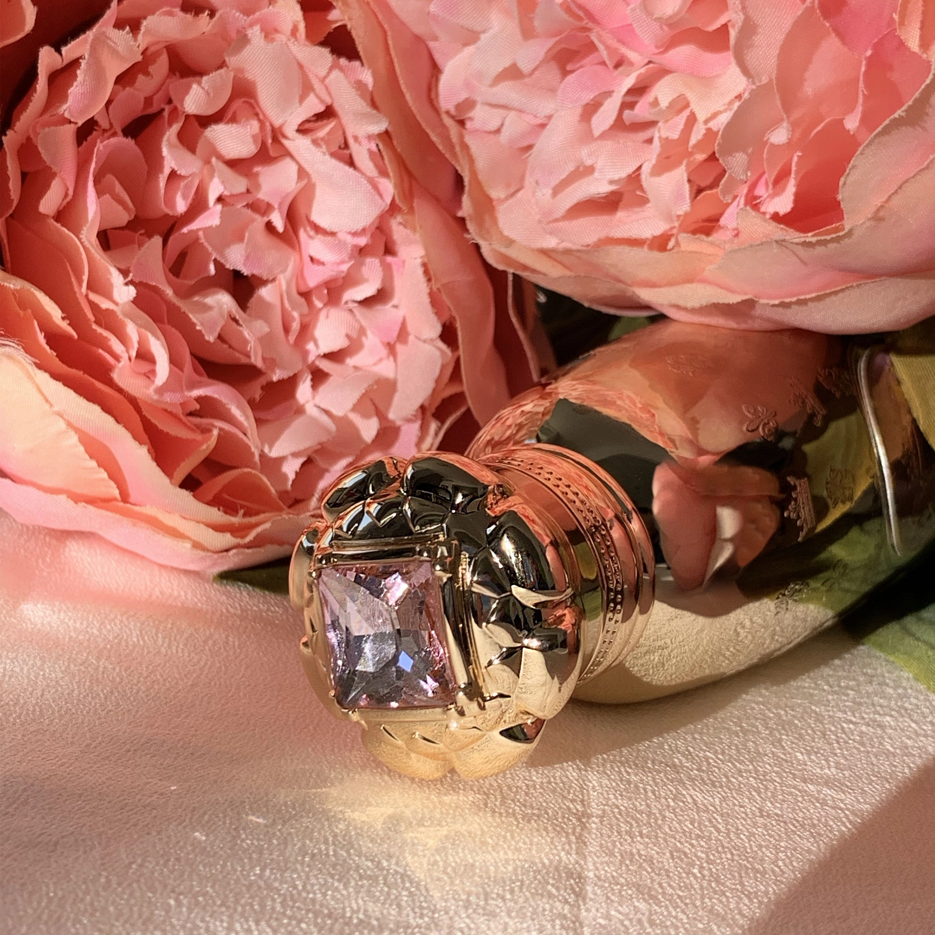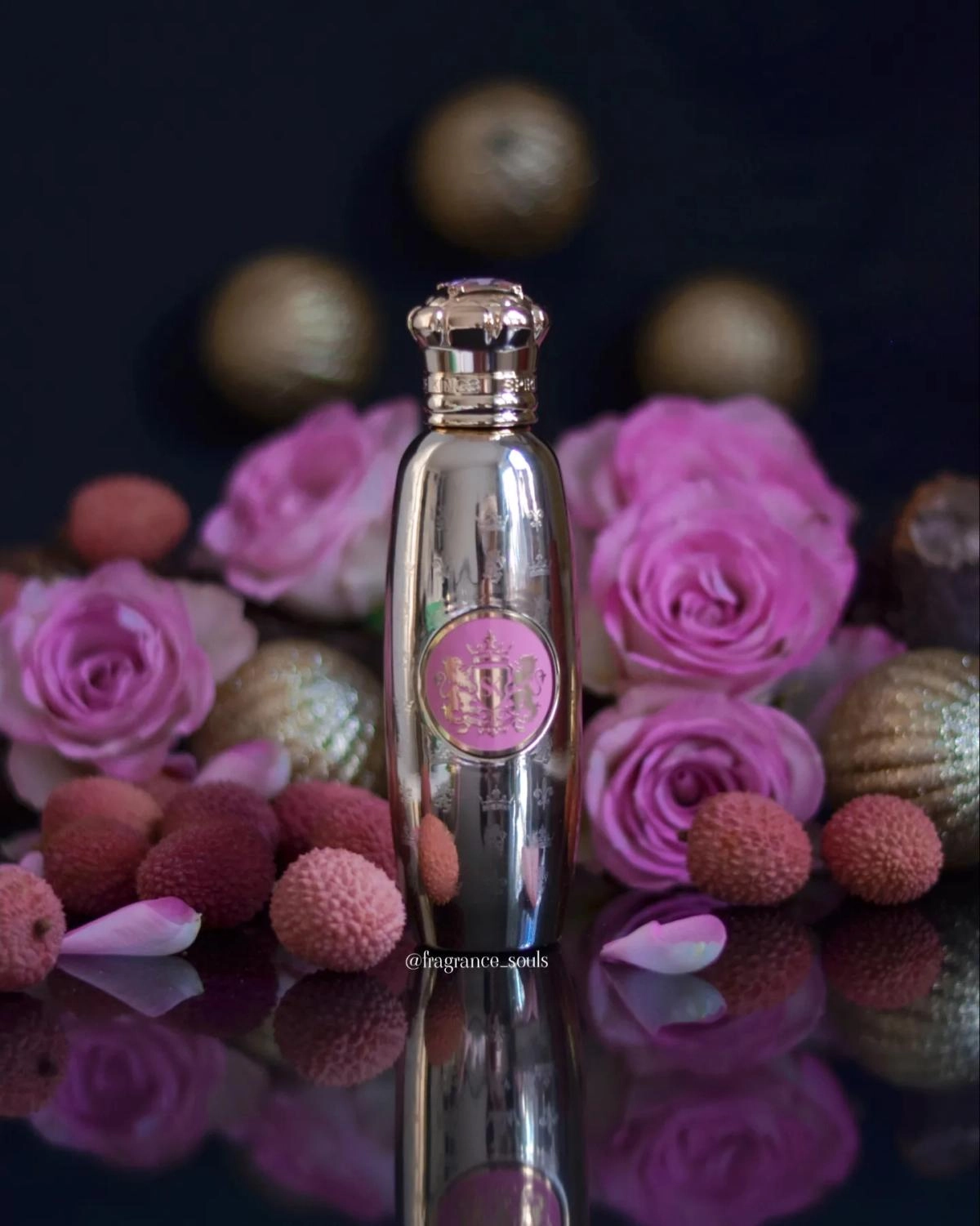Первоначальные ноты аромата заполнены цитрусовой свежестью терпкого личи и изысканного бергамота. Кислинка сочного ревеня гармонично переплетается с бальзамическими оттенками мускатного ореха. Сердце композиции раскрывает яркую петалию, где переплетаются ароматы пиона и розы, которые также присутствуют в пирамиде. Основу букета составляет чувственная мускусная вуаль. Экспрессивный шлейф образуется из теплых древесных аккордов кашмерана и кедра в сочетании с ароматным, ванильным ладаном.