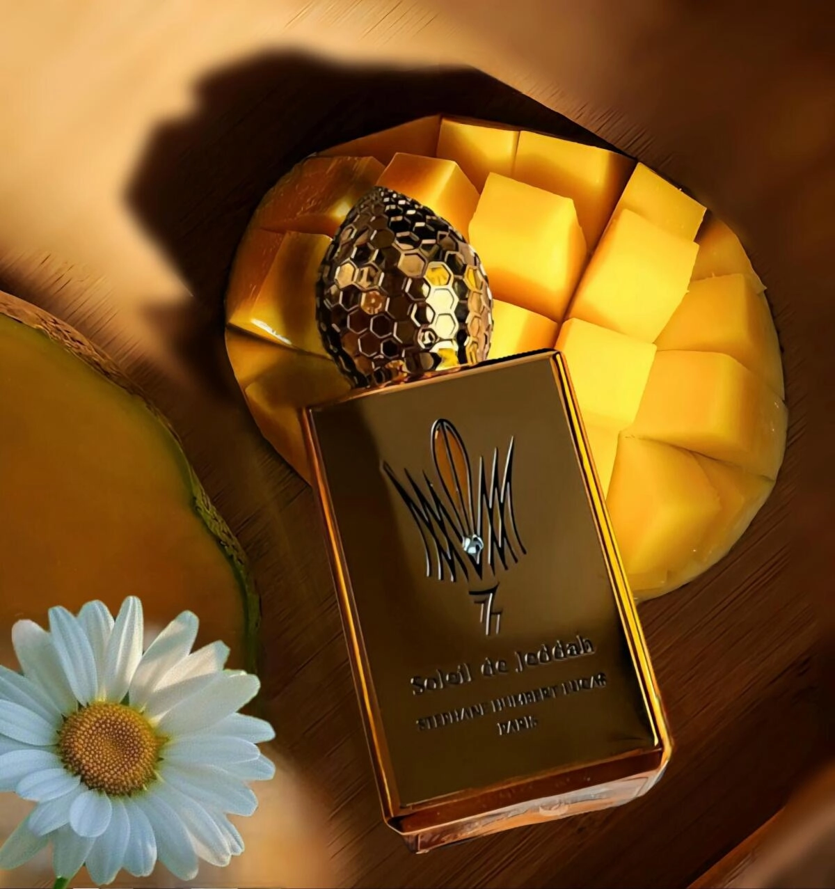 Soleil de Jeddah - Mango Kiss от Stéphane Humbert Lucas 777 – это увлекательный аромат для женщин и мужчин, который был представлен в 2022 году. Этот парфюм погружает в атмосферу тропиков с моментально узнаваемыми нотами спелого манго, ромашки и апельсинового цветка в верхних нотах.