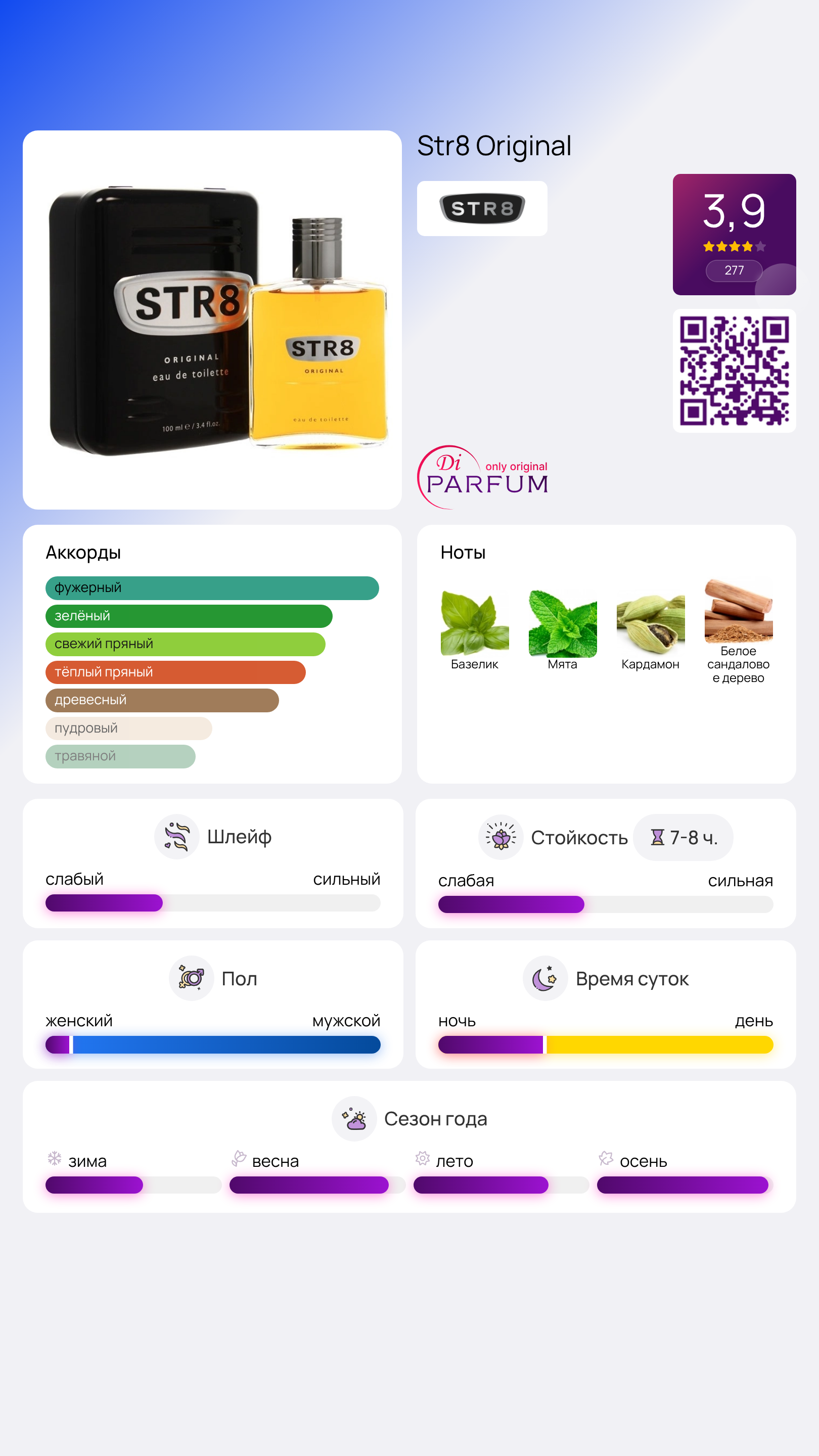 Согласно своей мужественной композиции, аромат производит впечатление современности, элегантности и духа свободы. Хотя в его структуре присутствует классическое сочетание, он все равно остается ярким, динамичным и, что самое интересное, непредсказуемым.