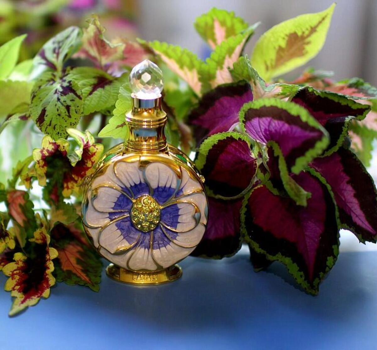 Layali представлена известным арабским брендом Swiss Arabian в виде концентрированных масляных духов. Уникальный флакон, оформленный в изысканном восточном стиле, дополняется эмалевыми элементами, бусинами и металлическим декором, а также «хрустальным» стеклом, что делает его неповторимым произведением искусства.