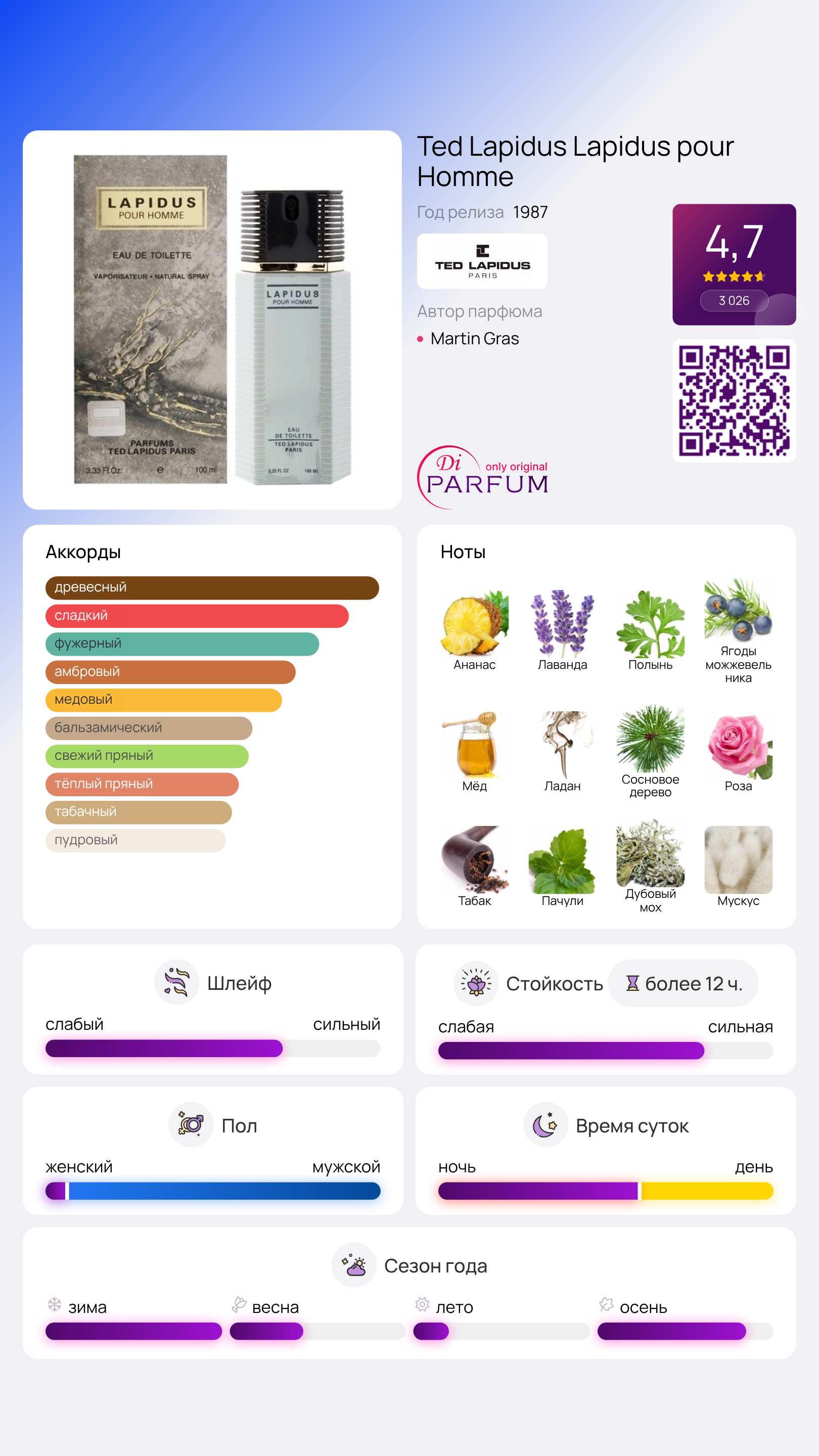 Аромат Lapidus Pour Homme от Ted Lapidus предназначен для решительных и мужественных мужчин, которые не боятся рисковать и стремятся к новым приключениям, осознавая, что без них жизнь становится скучной и однообразной.