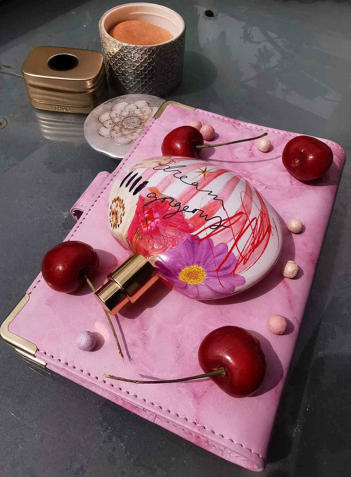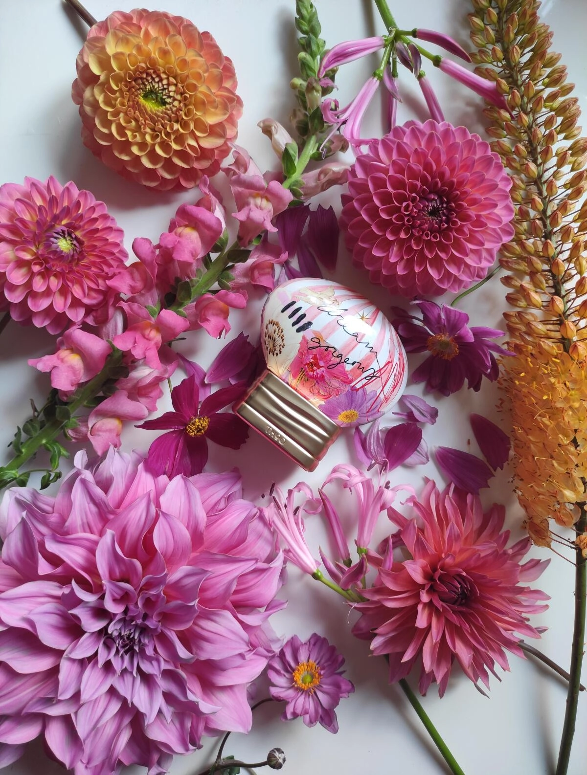 Начальные аккорды включают в себя яркие, свежие ноты черной вишни и земляники, которые погружают в атмосферу веселья и легкости. Легкий оттенок игристого шампанского придаёт композиции игривость. В сердечные ноты входят изысканные элементы помады, розы и жасмина, формируя элегантное звучание. Нота помады придаёт аромату кокетливый характер, в то время как роза добавляет нежности, как символ романтики. Жасмин, с его сладковатым и чувственным ароматом, создает ауру загадочности и привлекательности, превращая аромат в настоящее произведение искусства.