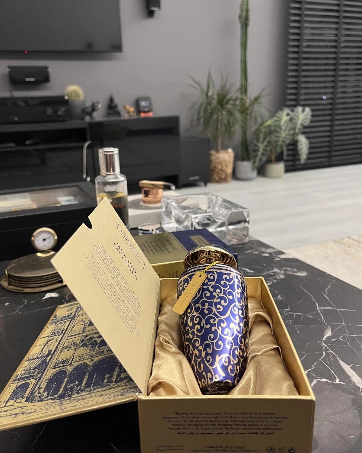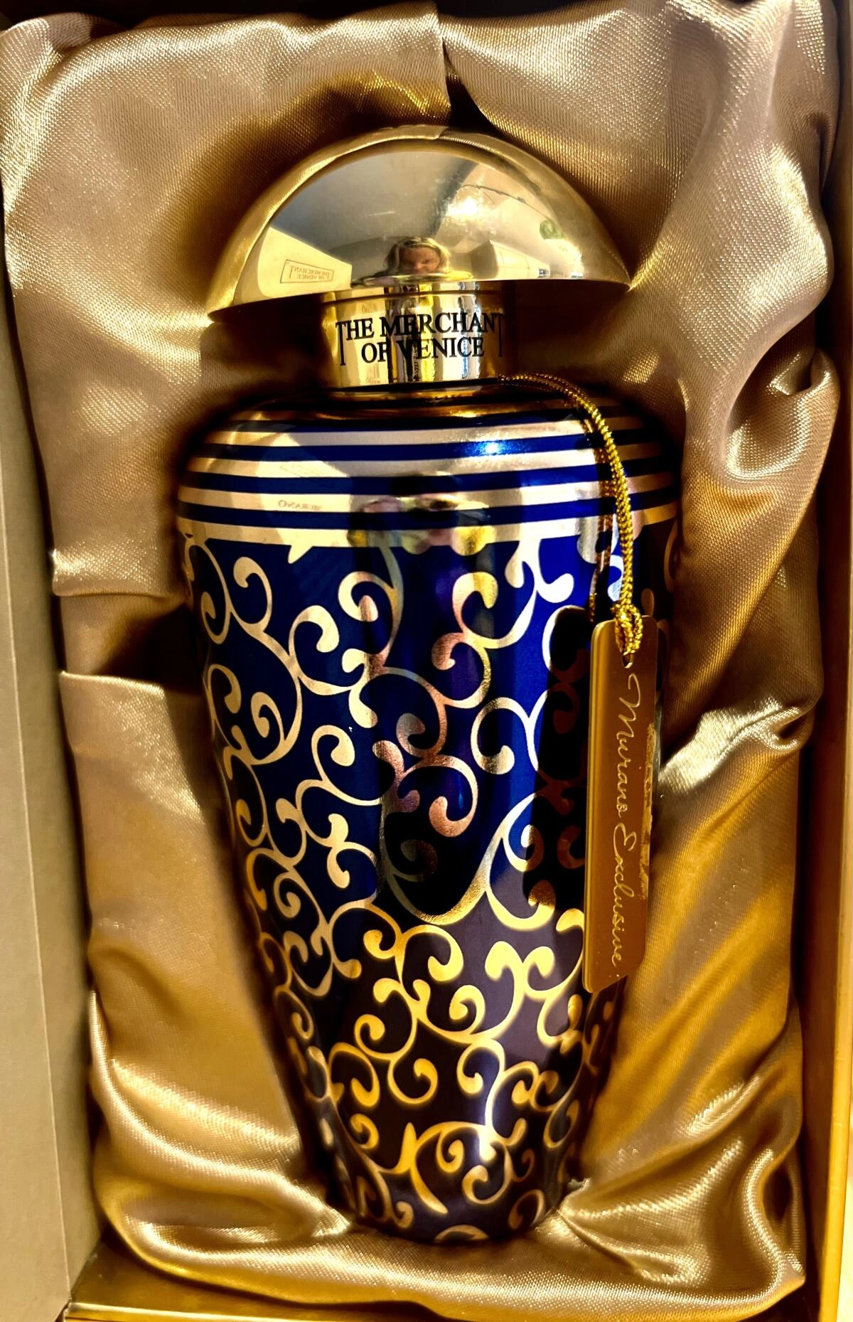 Парфюм The Merchant of Venice Arabesque представляет собой исключительный пример гармонии внешнего вида и внутреннего содержания. Этот древесно-восточный аромат-унисекс от итальянского бренда заключен в великолепный флакон из муранского стекла. Его элегантный синий цвет украшен золотыми узорами, напоминающими о восточной культуре.