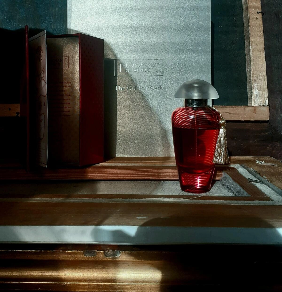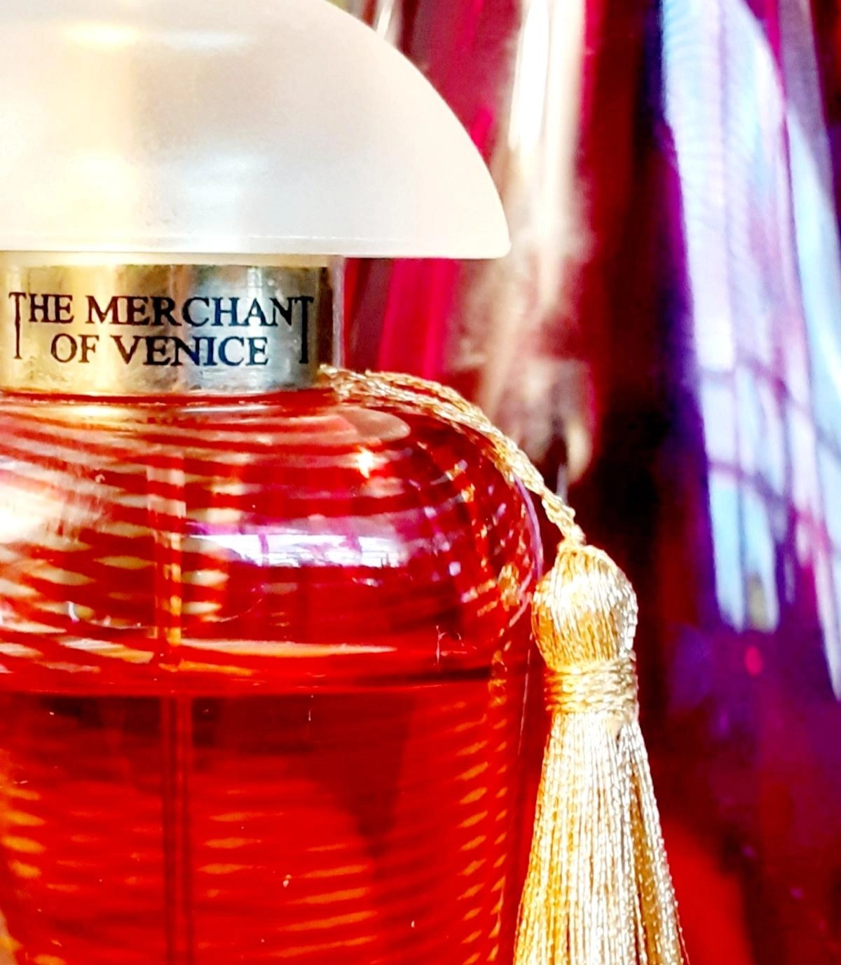 Созданная как знаковая композиция, Byzantium Saffron от The Merchant of Venice поражает своим великолепием и адресована тем, кто ценит путешествия и загадочную роскошь арабских стран. Красные, фиолетовые и белые оттенки флакона излучают позитивную энергетику. Золотая шелковая кисточка, напоминающая Розу ветров, украшает крышечку, а сам флакон по форме схож с амфорой.