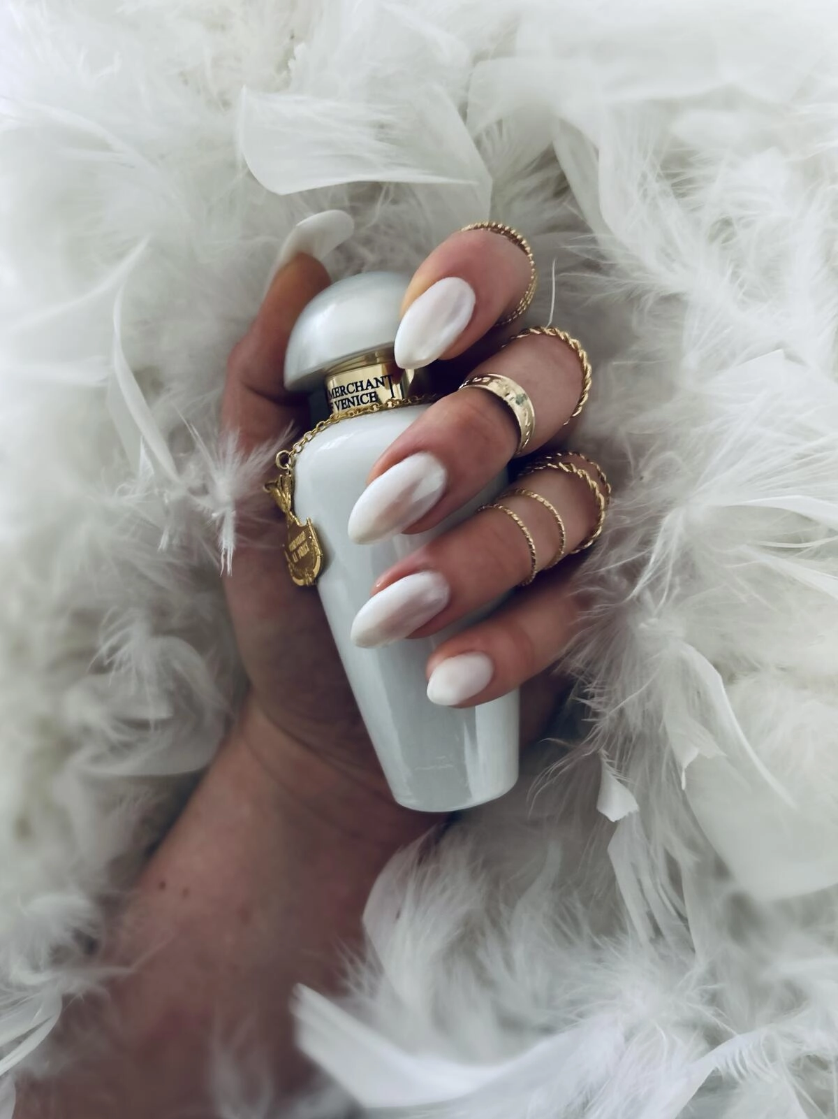 Уникальный кремовый шлейф аромата выглядит изысканно, а его богатый букет реализует гармонию бобов тонка, сливочного сандала и хвойного кедра на фоне цветочной и фруктовой мускусной ноты. My Pearls, роскошный аромат от The Merchant of Venice, был представлен в 2020 году в рамках «художественной» парфюмерной коллекции La Fenice, посвященной театру. Искусно выполненный перламутровый флакон отражает оттенки натурального жемчуга, а светло-голубая упаковка открывается, как театральный занавес, выделяя флакон, размещенный как певица на сцене. Завершает дизайн золотой Феникс на горлышке, символизирующий возрождение.