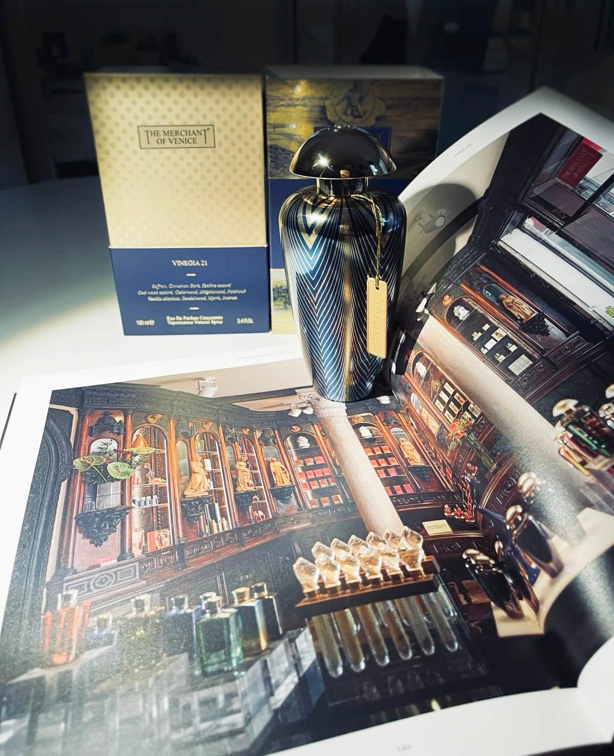 Интригующая композиция Vinegia 21 была представлена в 2021 году в рамках коллекции Murano Exclusive и вдохновлена богатой историей Венеции, которая "течет в венах основателя бренда". Сырьё, использованное для создания аромата, было отобрано в рамках экологической программы. Флакон выполнен в готическом стиле, его синее муранское стекло украшено золотыми узорами.