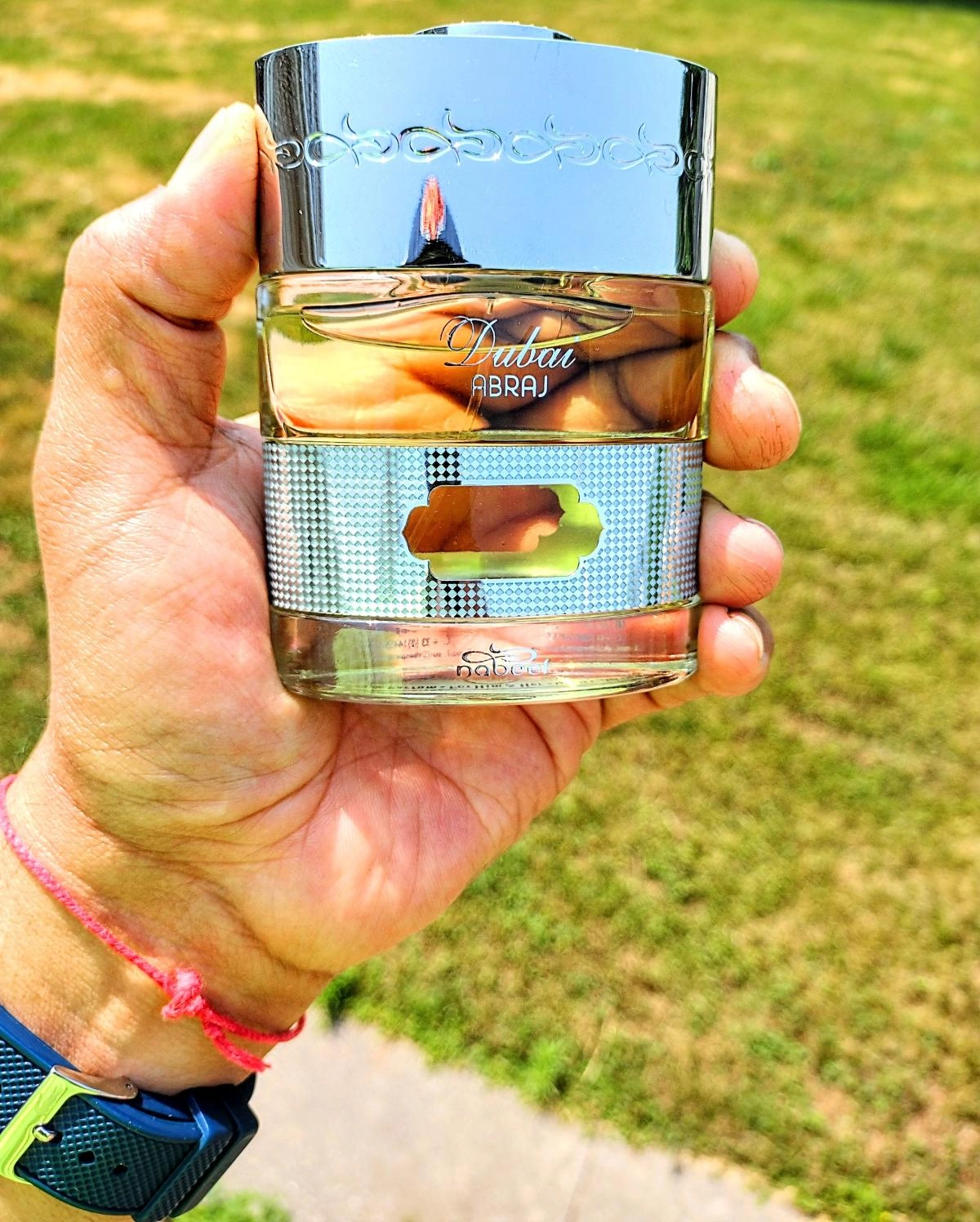 Светлый сливочный сандал и глубокие пачули гармонично взаимодействуют на фоне анималистических акцентов дорогой кожи. Полупрозрачная цветочная вуаль насыщена медовым жасмином, травянистой фиалкой и зелеными геранью. Композиция Abraj от The Spirit of Dubai, представленная в 2015 году в рамках коллекции из пяти ароматов, напоминает многогранный восточный ковер, так многообразен её стиль и множество составляющих.