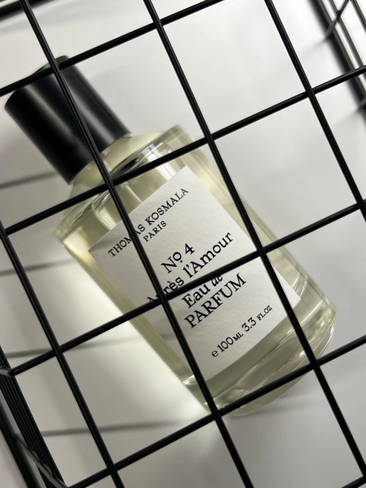 Название аромата переводится с французского как «После любви» и вдохновлено песней 60-х годов, написанной знаменитым композитором Серем Генсбуром, которая завоевала популярность благодаря интерпретации Шарля Азнавура. Состав Thomas Kosmala No 4 Apres L'Amour отражает возвышенные чувства, присущие страстной любви, создавая элегантный и утонченный запах, который привлечет внимание романтиков вне зависимости от пола.