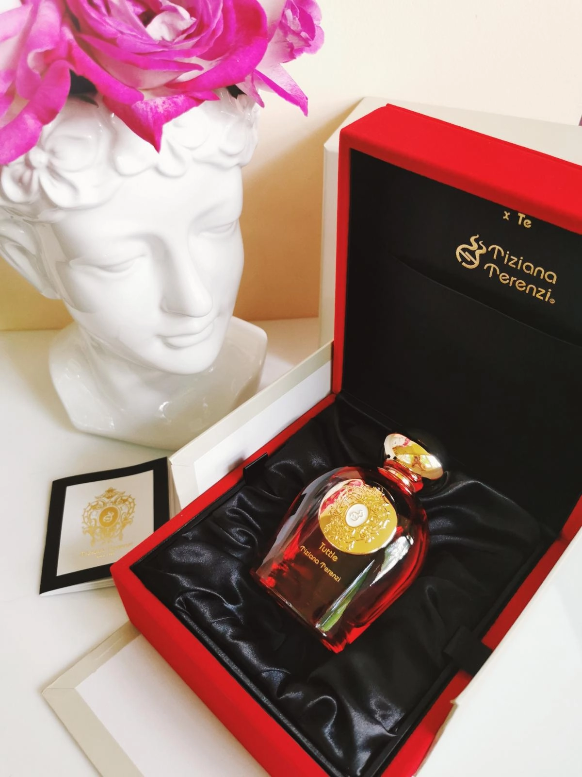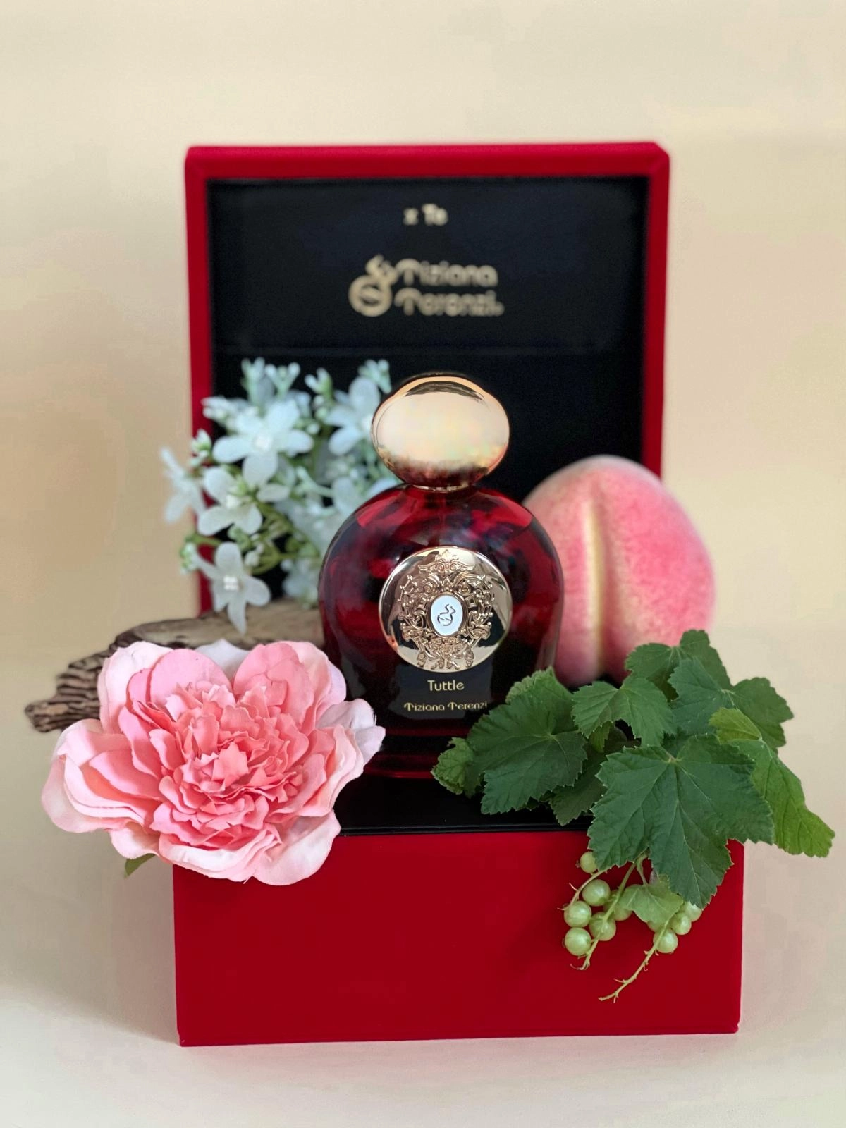 В этом великолепии выделяются тонкие амбровые ноты, которые подчеркивают тщательность важного события. Завораживающая база Tiziana Terenzi Tuttle образуется из камфорно-терпкого пачулевого листа, скрывающего от посторонних глаз чувственную историю, написанную неразборчивым почерком импульсивного ветивера на хрупком пергаменте, несущем отпечаток сливкового поцелуя сандала и легкой ностальгии кедра.