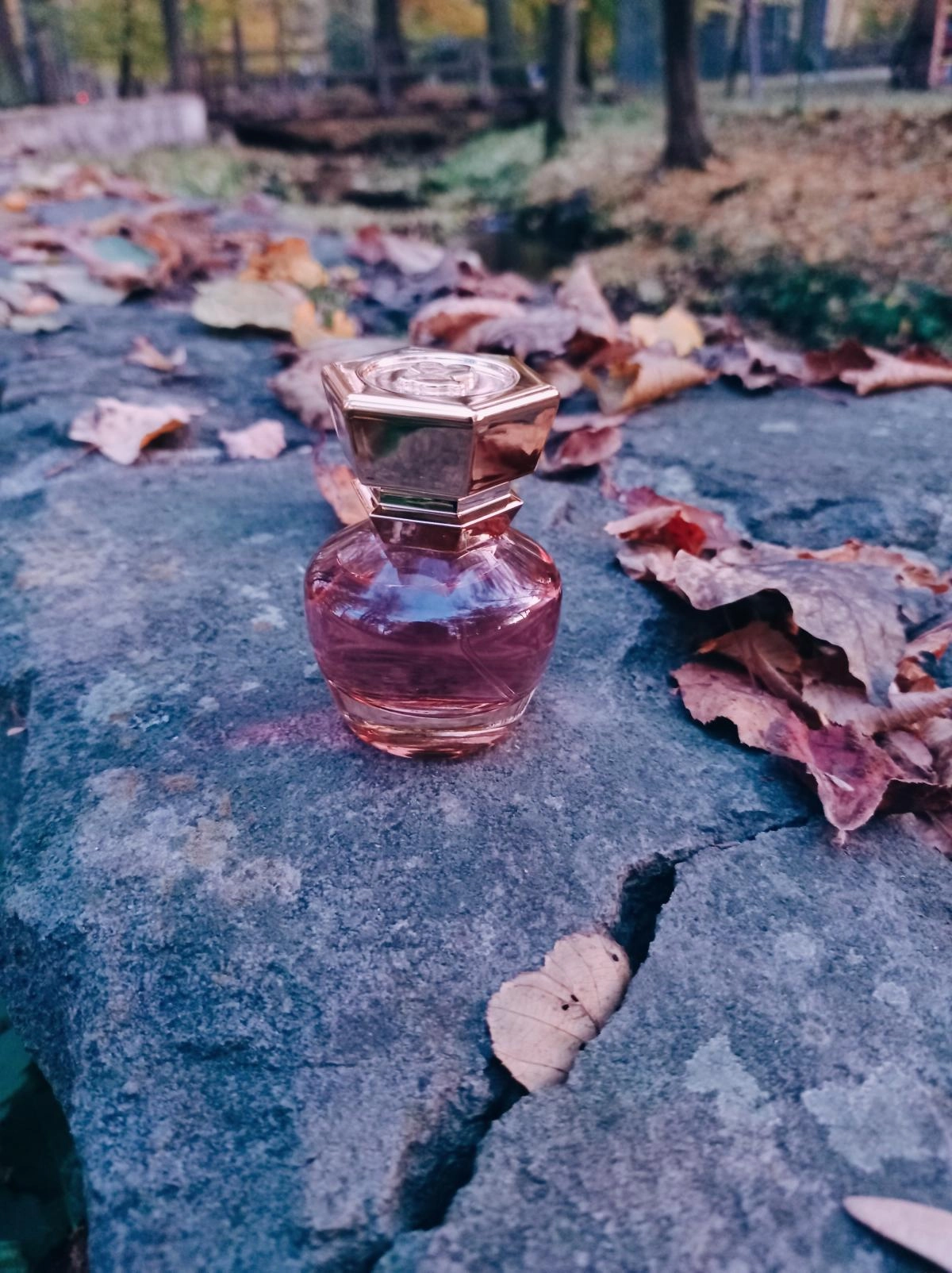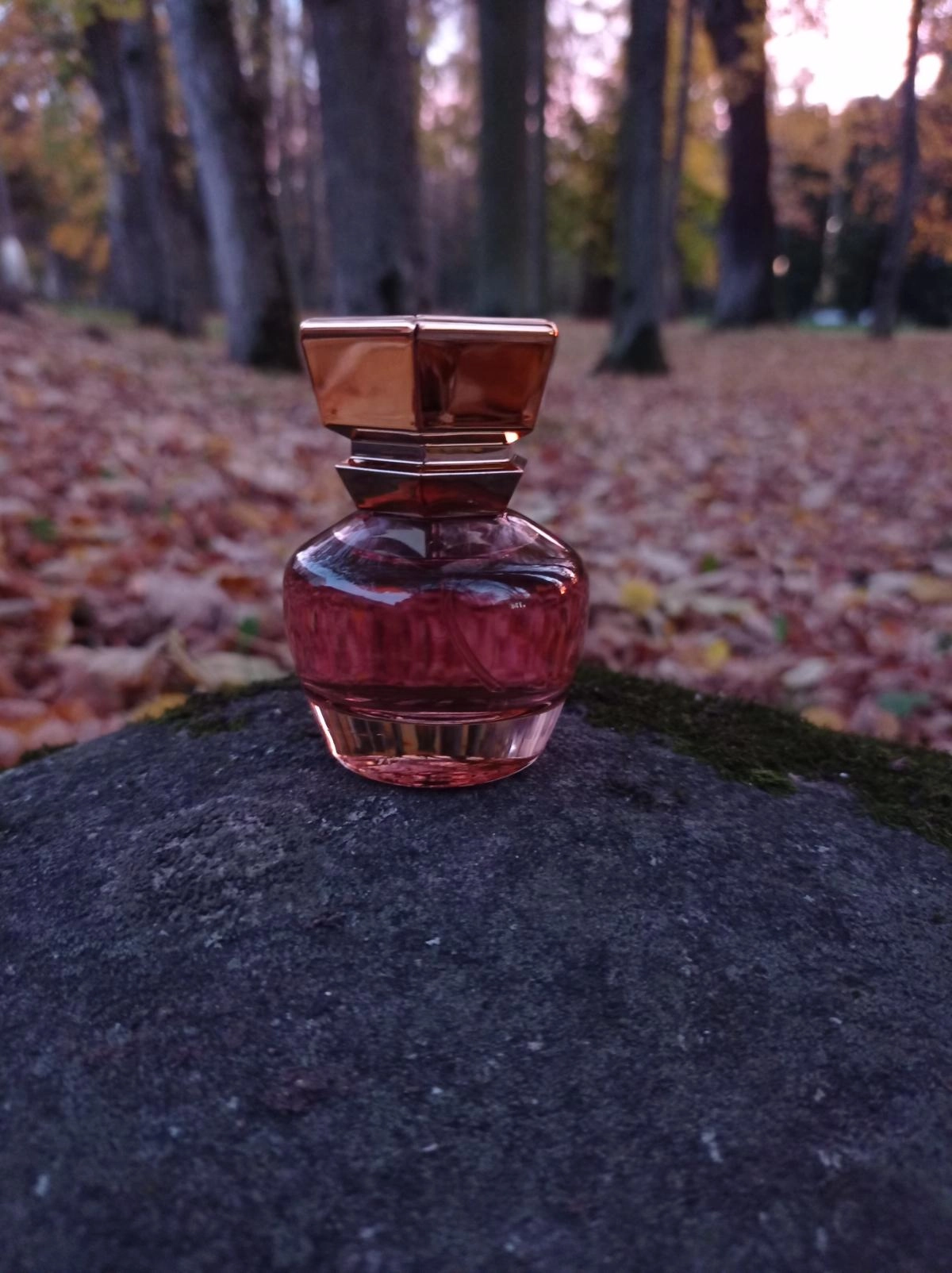 В верхних нотах парфюма ощущается сладкий танжерин в сочетании с пряным розовым перцем, а искрящийся лимон придает свежесть. Черная смородина добавляет ноту терпкости к зеленым листьям. Сердце композиции открывается царственной королевой цветов, чей дымный аромат захватывает с первых мгновений. Затем приходит пудровый корень ириса, который напоминает фиалку.