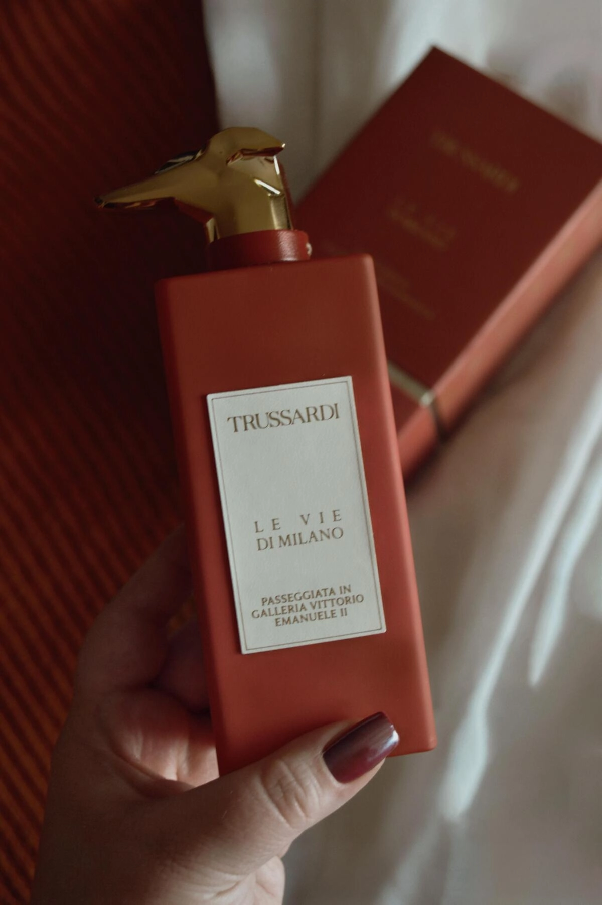 Этот роскошный и эксклюзивный аромат символизирует один из крупнейших торговых пассатов на площади Собора, который стал первым в Европе, обладая уникальным масштабом и ассортиментом. Флакон этого аромата выглядит как произведение дизайнерского искусства: кирпично-бордовый с сатиновым покрытием и необычным колпаком, напоминающим профиль итальянской борзой. Его создатель, Julie Masse, запечатлел атмосферу галереи с помощью тщательно продуманной композиции.