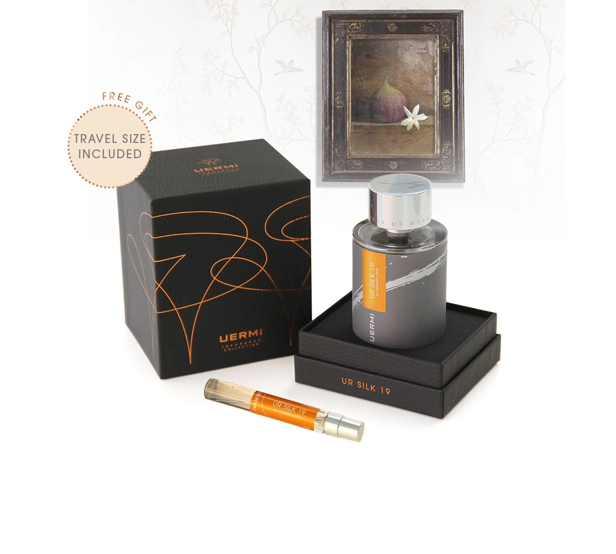 Аромат Uer Mi UR ± Silk 19 представляет собой свежий древесный букет, олицетворяемый гладкой и чувственной текстурой шелка. Прикосновение этого материала к коже вызывает ощущение восхищения. Цифра 19 символизирует высший стандарт качества шелка. Выпущенный в 2018 году, этот аромат является частью "Парфюмерного гардероба" креативного французского бренда "Надень Меня" и является новой версией аромата, представленного в 2014 году.