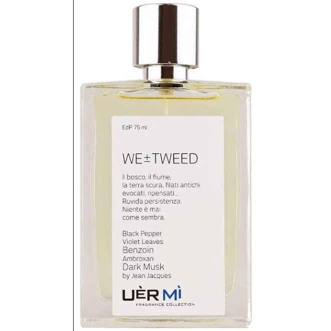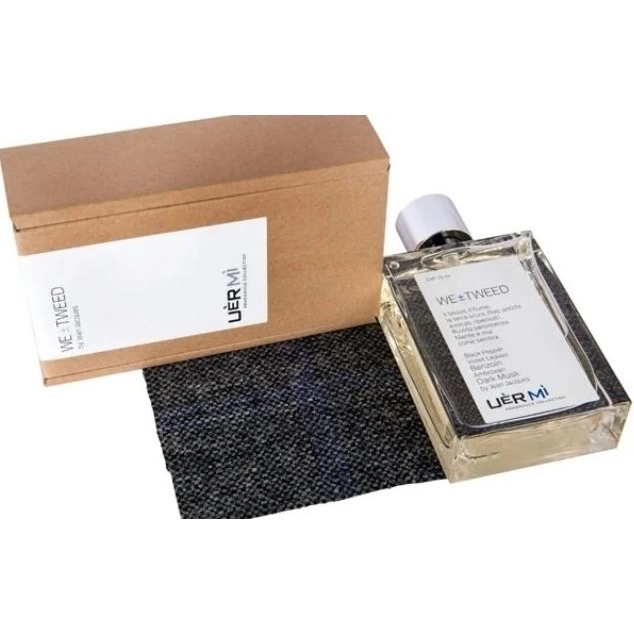 Теплый шлейф аромата окутан смолистым бензоином с легкой горечью, а плотный амброксан (синтетическая амбра) обволакивает все это легким мускусным покровом. Композиция We ± Tweed от Uer Mi, одновременно мечтательная и строгая, предназначена для сильных, но чувствительных мужчин и женщин. Она демонстрирует мастерство парфюмера Жана Жака в гармоничном сочетании разных, казалось бы, несовместимых ингредиентов.