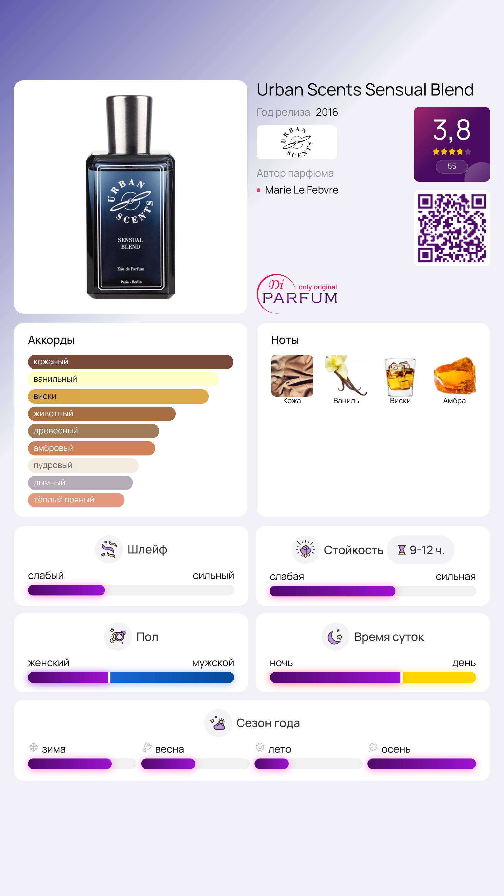 амбра, виски, ваниль, кожа