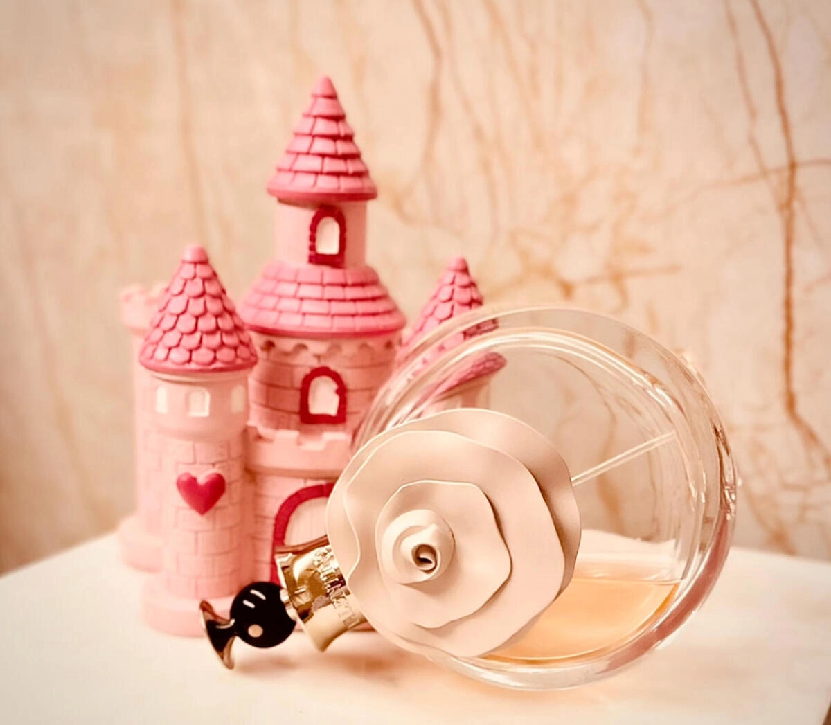 Флакон в нежно-розовом оттенке, украшенный объемными пастельными цветами, создает атмосферу нежности и любви. В целом, аромат «Валентина» характеризуется ванильно-теплыми, мягкими и чувственными нотами.