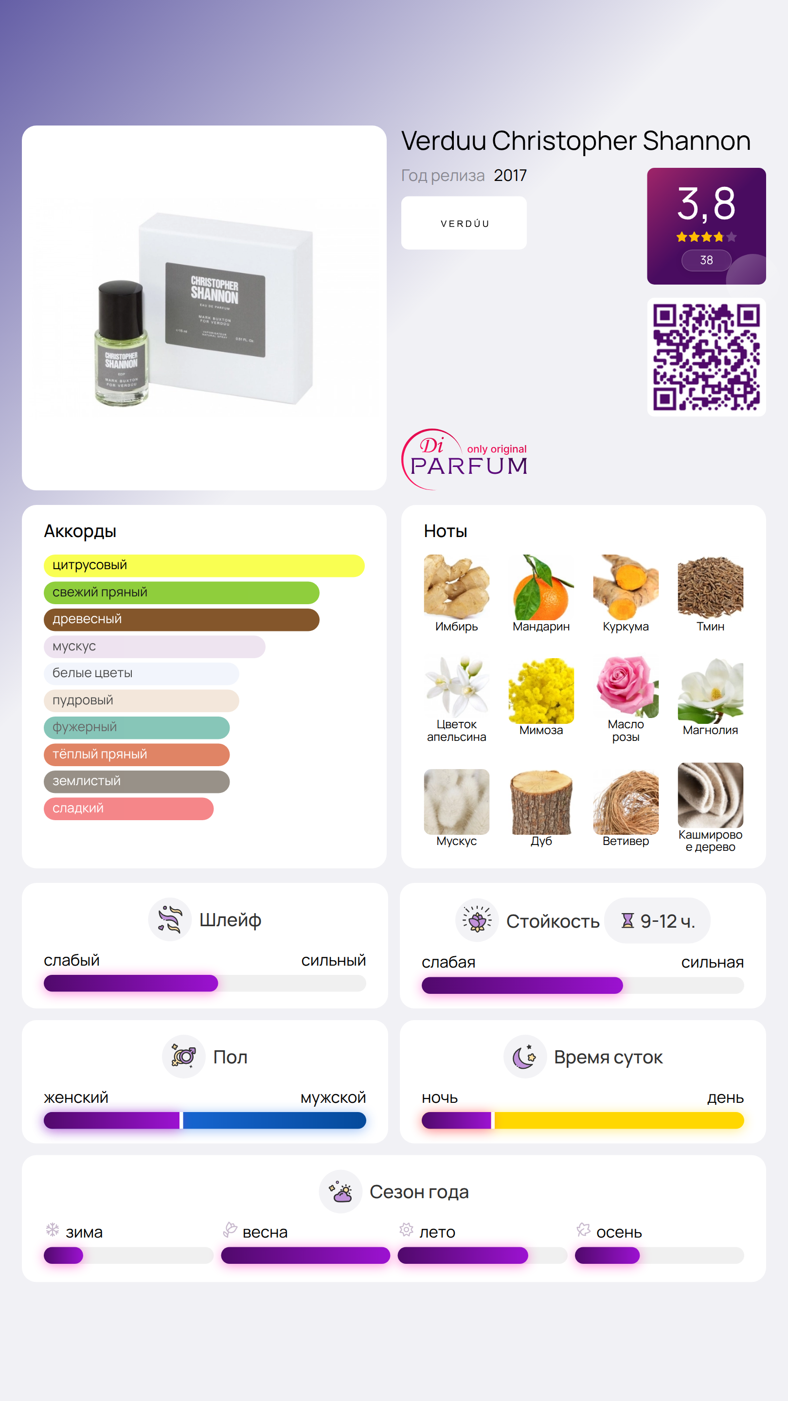 Christopher Shannon от Verduu — это уникальный флорально-древесно-мускусный аромат, созданный как для мужчин, так и для женщин. Выпущенный в 2017 году, этот парфюм стал результатом творческой работы талантливого парфюмера Марка Бакстона.