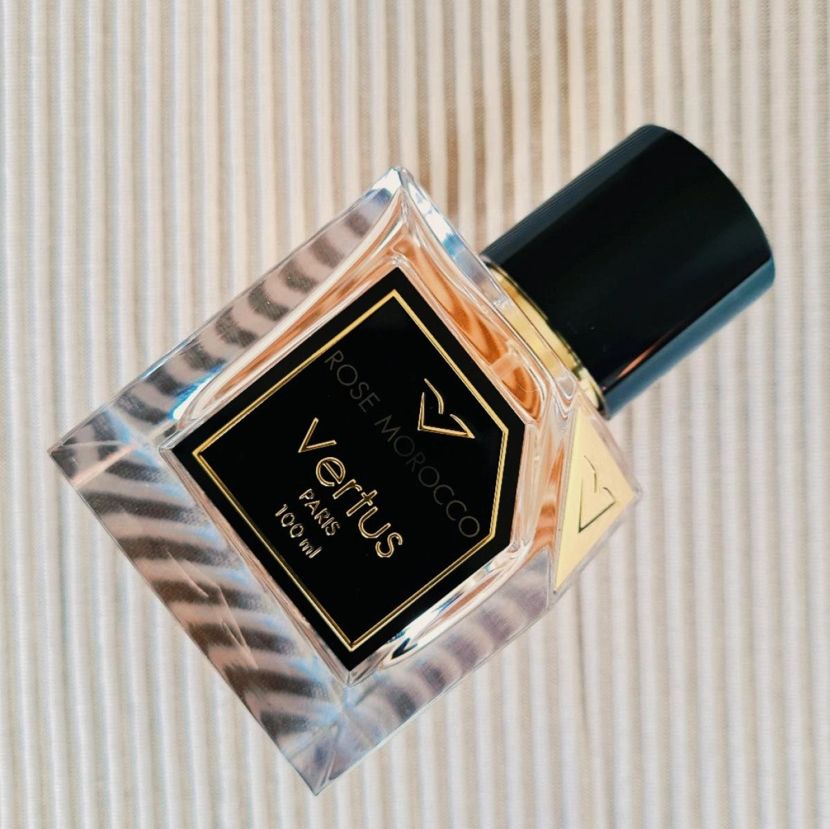 Цветочно-восточная композиция Vertus Rose Morroco представляет собой изысканную интерпретацию марокканской розы, окруженной ароматами цветущих и фруктовых садов арабского мира. Она была представлена в 2015 году как часть коллекции Exclusive Collection. Начальные ноты раскрываются свежестью сочного яблока, дополненного теплом солнечного шафрана и пряностью кардамона. Элементы медово-пряной розы оживляются мятными оттенками герани.