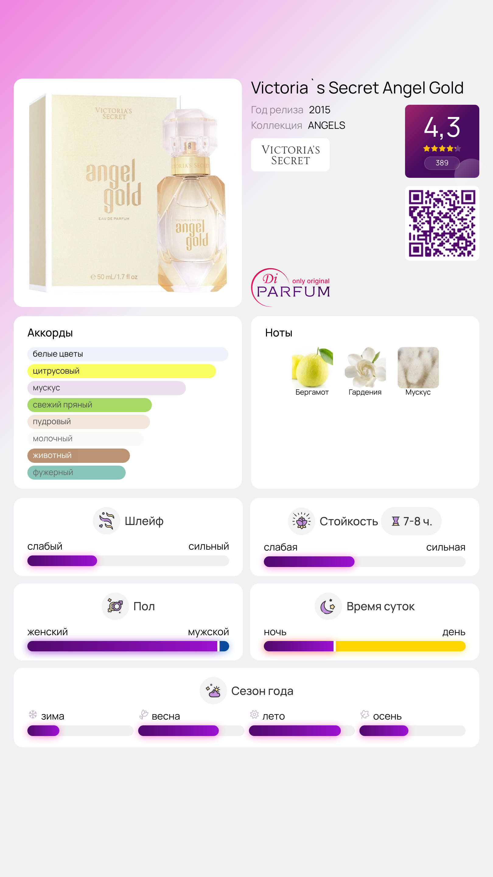 Коллекция цветочных и фруктовых ароматов от Victoria’s Secret выделяется своей обширностью в данной категории. В дополнение к своим популярным парфюмам, бренд представил новинку Angel Gold. Этот освежающий и энергичный аромат создан для современных и активных девушек.