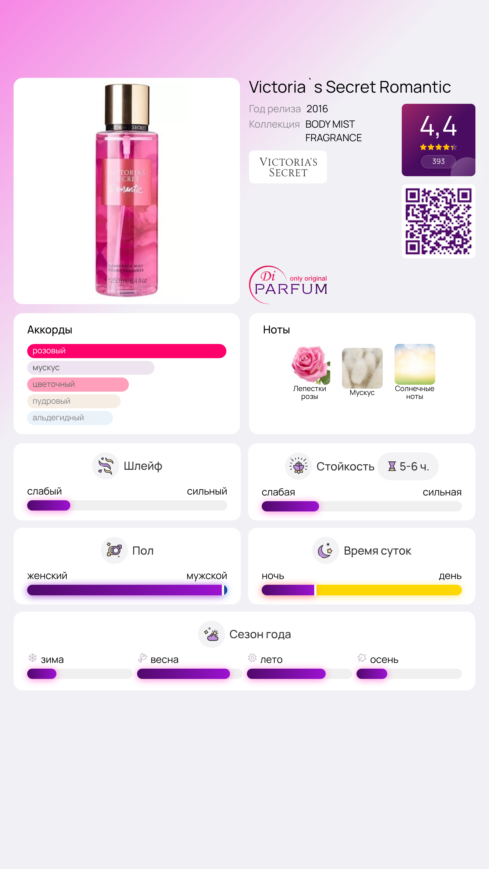 Парфюм от Nan – это воплощение элегантности и нежности, который принадлежит к цветочной группе ароматов. Его изысканное сочетание цветочных нот с деликатным мускусом создает атмосферу утонченности и романтики, которую оценят ценители настоящего искусства парфюмерии.