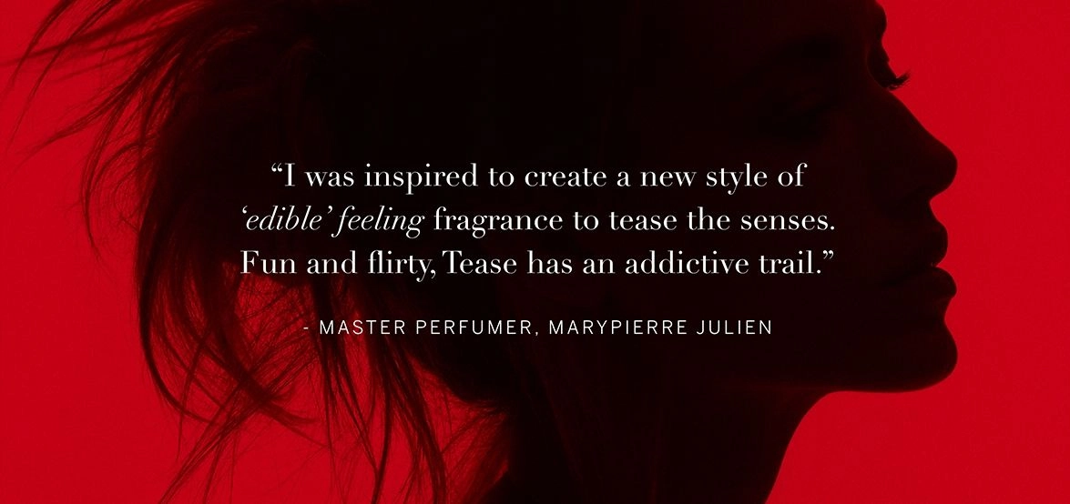 Яркая и искристая сладость зелёной груши Анжу создает иллюзию свежих фруктовых кусочков, в то время как шелковистая гардения, с её цветочно-фруктовым нотами, обволакивает кожу свежестью и ароматом. Упругие лепестки этого цветка гармонично дополняются пряной и экзотической черной ванилью. Выпущенный в 2022 году в ограниченном количестве, аромат Tease Collector's Edition является частью коллекции Tease.