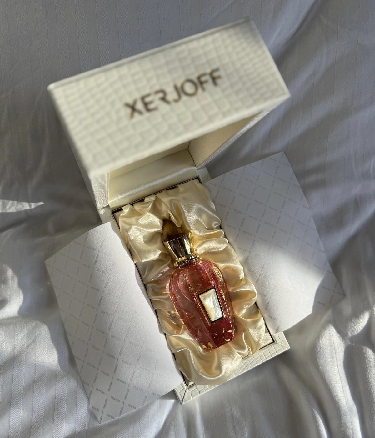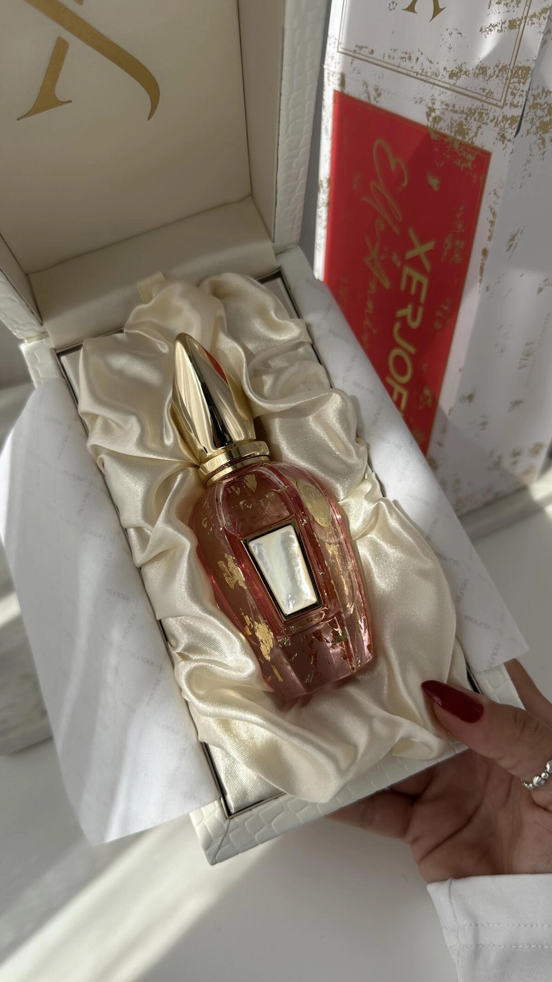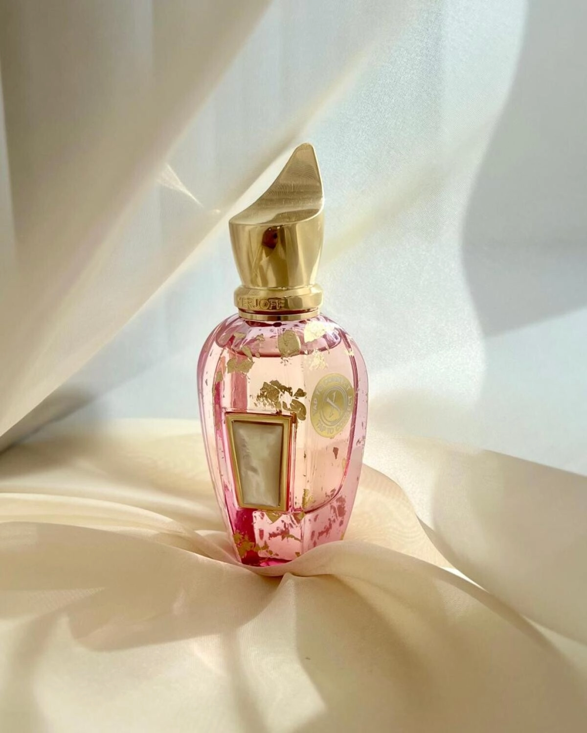 Xerjoff Elle Anniversary представлен в флаконе, схожем с другими ароматами коллекции. Однако этот раз он выполнен в нежном розовом цвете с золотыми элементами, а на передней стенке располагается белая перламутровая вставка, подчёркивающая его изысканность.