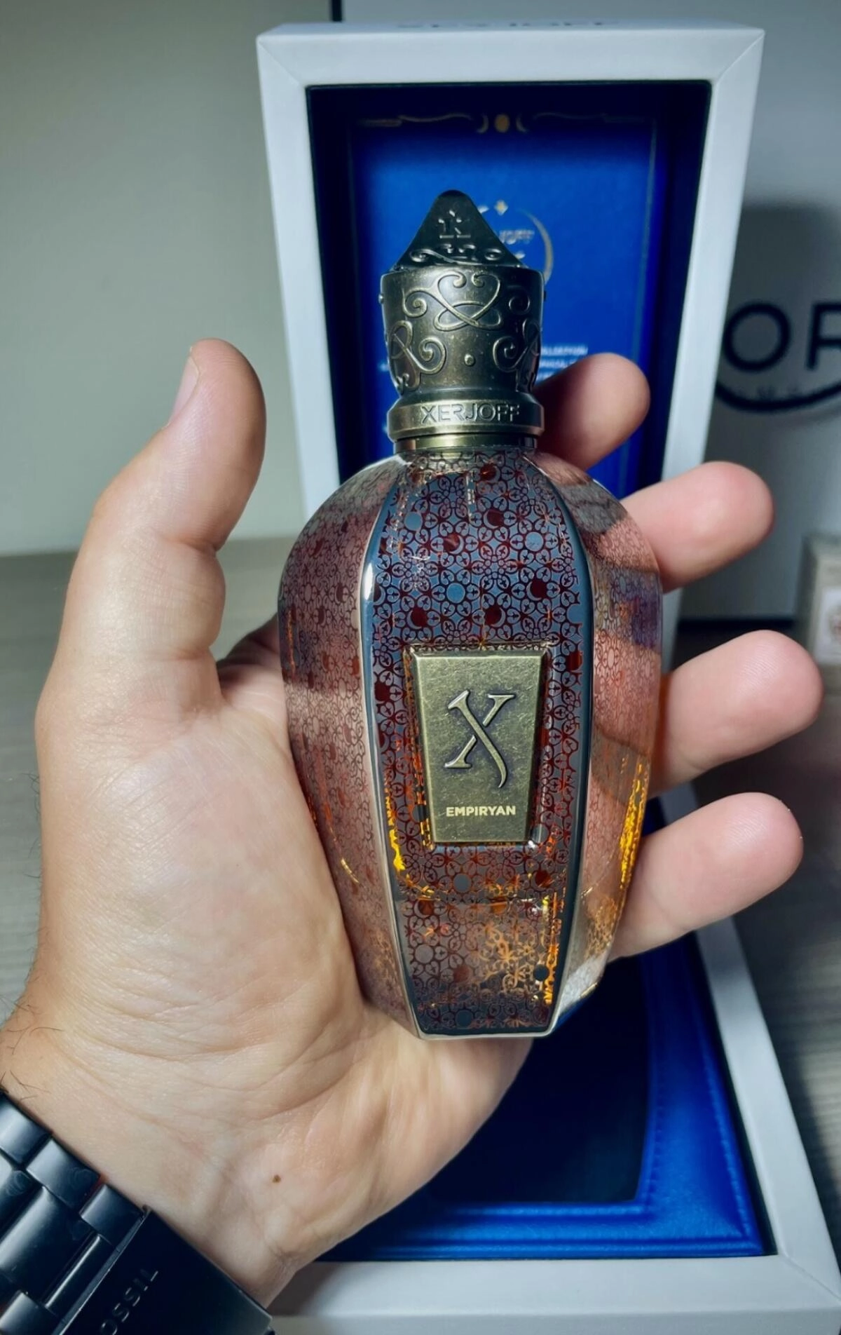 Аромат Xerjoff Empiryan, насыщенный восточными древесными нотами, черпает вдохновение из концепции «высшего неба» и космологии, изучающей происхождение Вселенной. Этот парфюм предназначен как для мужчин, так и для женщин, позволяя им ощутить связь с духом природы. Смелая и соблазнительная композиция очаровывает с первых мгновений. Согласно пресс-релизу, этот аромат - «символ божественной святости».