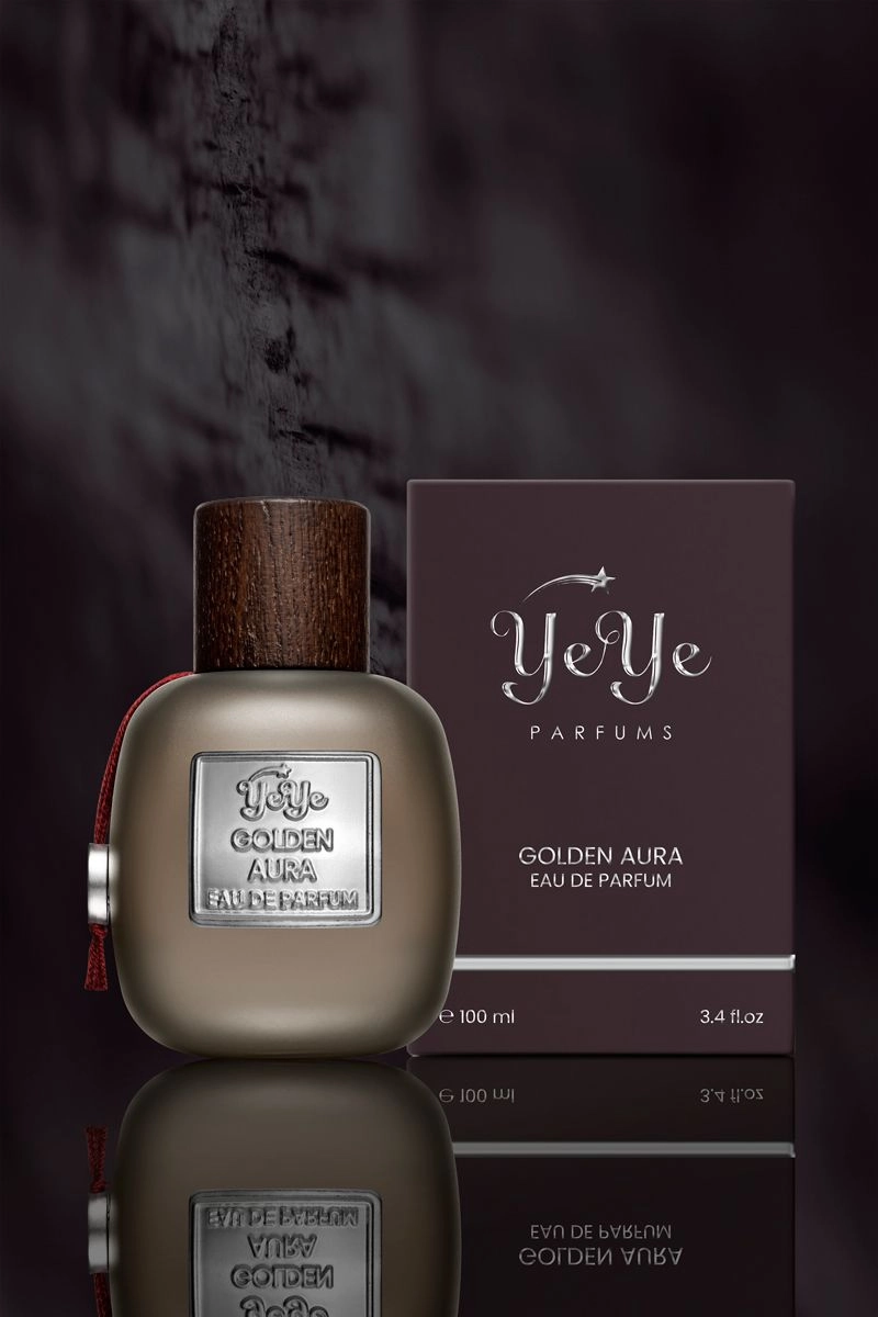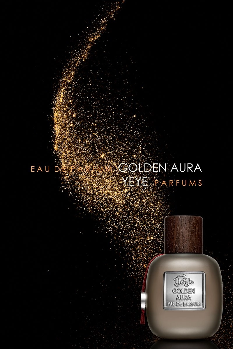 В шлейфе сливочный сандал Майсур гармонирует со смолистой и слегка горьковатой зеленью пачулей. Энигматическая композиция Golden Aura от YeYe Parfums была презентована американским брендом в 2021 году. Флакон в темном золотом цвете дополнен деревянным колпачком и красной ниткой, а также украшен серебряными элементами — табличкой и печатью. Внутри — парфюмерная интерпретация драгоценного металла.