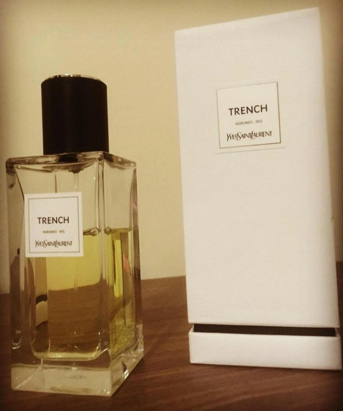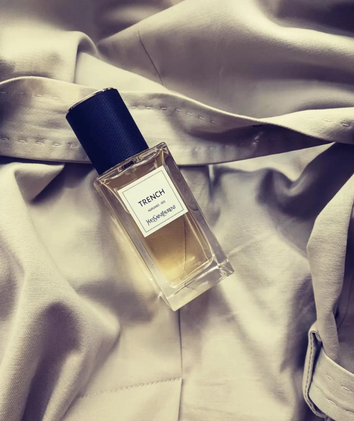 Парфюмеры его модного дома вдохнули жизнь в утонченный стиль этого наряда, создав оригинальный аромат с тем же названием. Цветочно-фруктовая композиция Trench Yves Saint Laurent подходит как для мужчин, так и для женщин. Она начинается с верхних нот цитрусовых и инжира, переходит к сердечным нотам пудрового ириса и нероли, а завершается на элегантной базе с великолепным сочетанием амбретты, белого кедра и нежного мускуса.