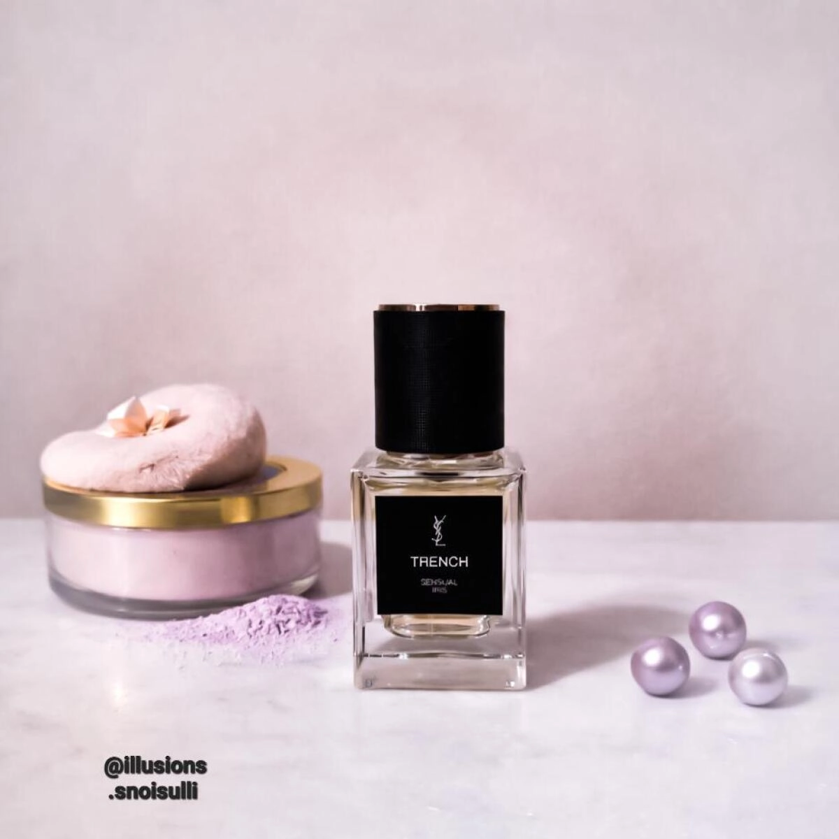 Парфюмеры его модного дома вдохнули жизнь в утонченный стиль этого наряда, создав оригинальный аромат с тем же названием. Цветочно-фруктовая композиция Trench Yves Saint Laurent подходит как для мужчин, так и для женщин. Она начинается с верхних нот цитрусовых и инжира, переходит к сердечным нотам пудрового ириса и нероли, а завершается на элегантной базе с великолепным сочетанием амбретты, белого кедра и нежного мускуса.