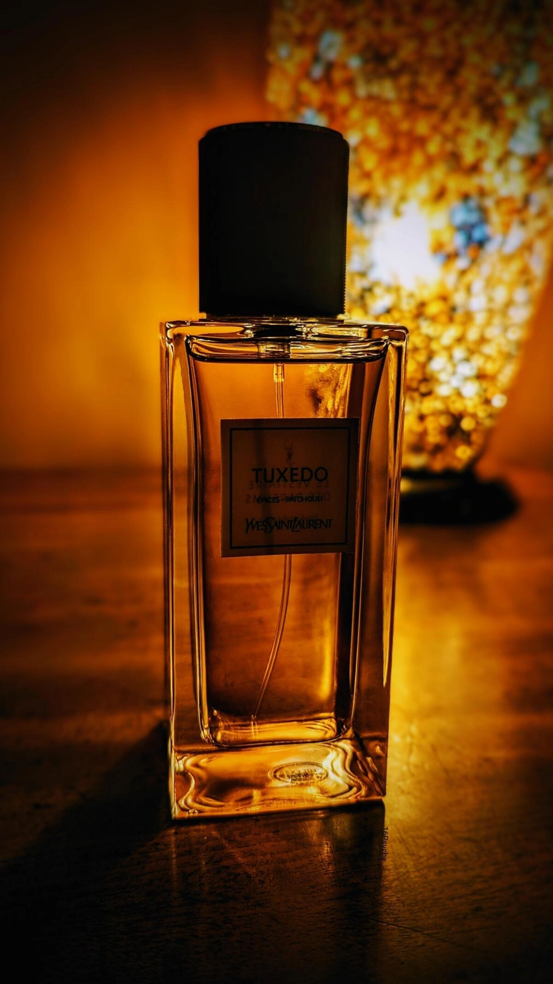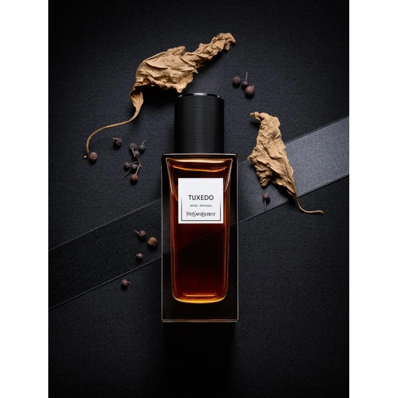 Аромат Tuxedo от Yves Saint Laurent подходит как для мужчин, так и для женщин. Шипровая формула раскрывается верхними нотами листа фиалки, бергамота и кориандра. В сердце аромата переплетены ноты розы и ландыша, дополненные острым черным перцем. Базовые ноты составляют серая амбра, ваниль и пачули.