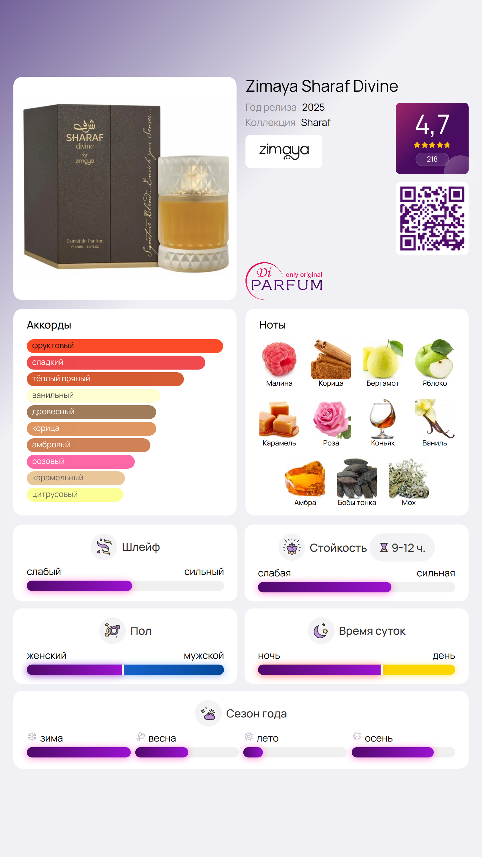 Sharaf Divine — это идеальный выбор для тех, кто ценит многослойные ароматы с восточными и гурманскими акцентами, готовые быть уверенными в своем стиле и индивидуальности.