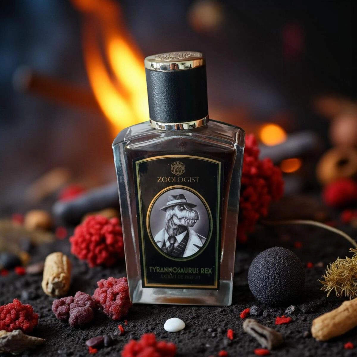 В завершении Zoologist Perfumes Tyrannosaurus Rex раскрывает тепло — подобно шкуре ящера, согретой солнцем, страх уходит, а тягучие капли смолы завораживают гиганта. Олибанум привносит чистую духовность, а белый кедр успокаивает и охлаждает раскаленные эмоции, пока сладость ванили, оттененная дымной горечью пачули, окутывает нас сном.